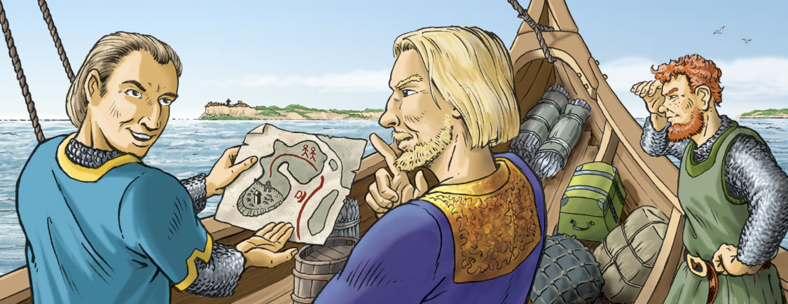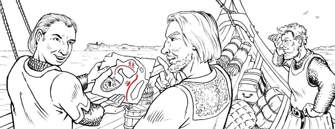 viser vore tre gutter, da de fŒr Arkona pŒ klinten i sigte fra skibet.