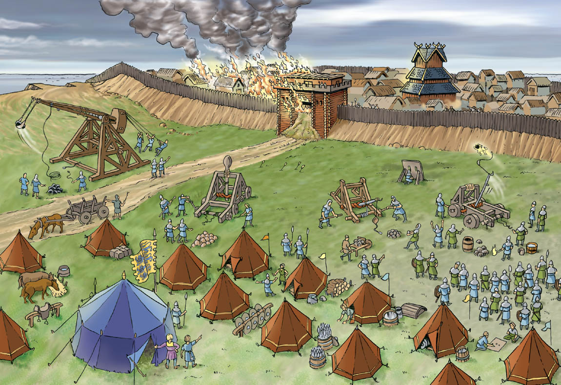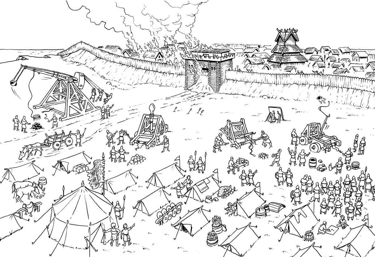 Her er nr. 17, belejringsbilledet, hvor ilden har fået fat i Arkonas huse: