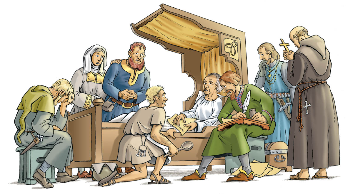 viser Absalon på dødslejet. Det er IKKE lige før han udånder.