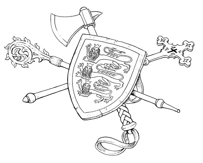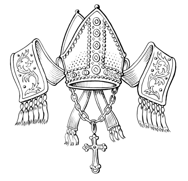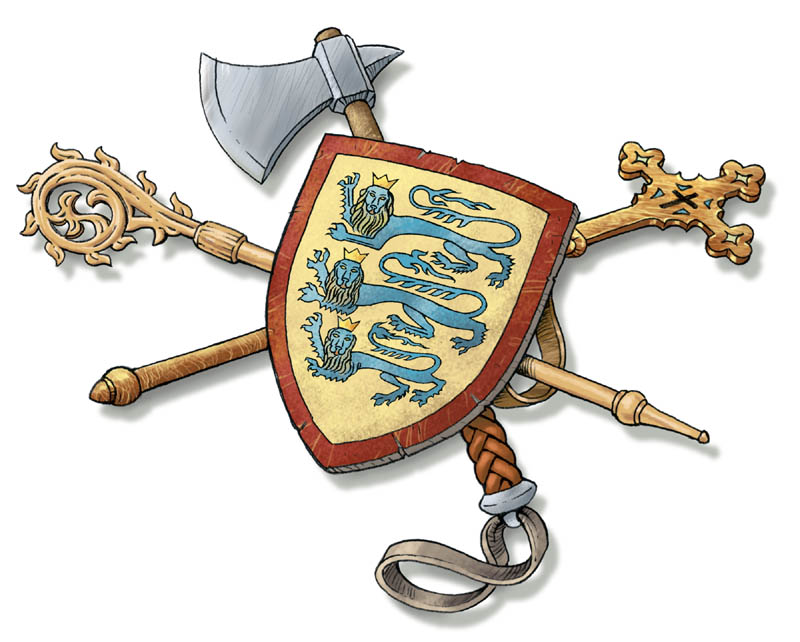 vignet med Valdemars skjold og Absalons økse, bispestav og kors.